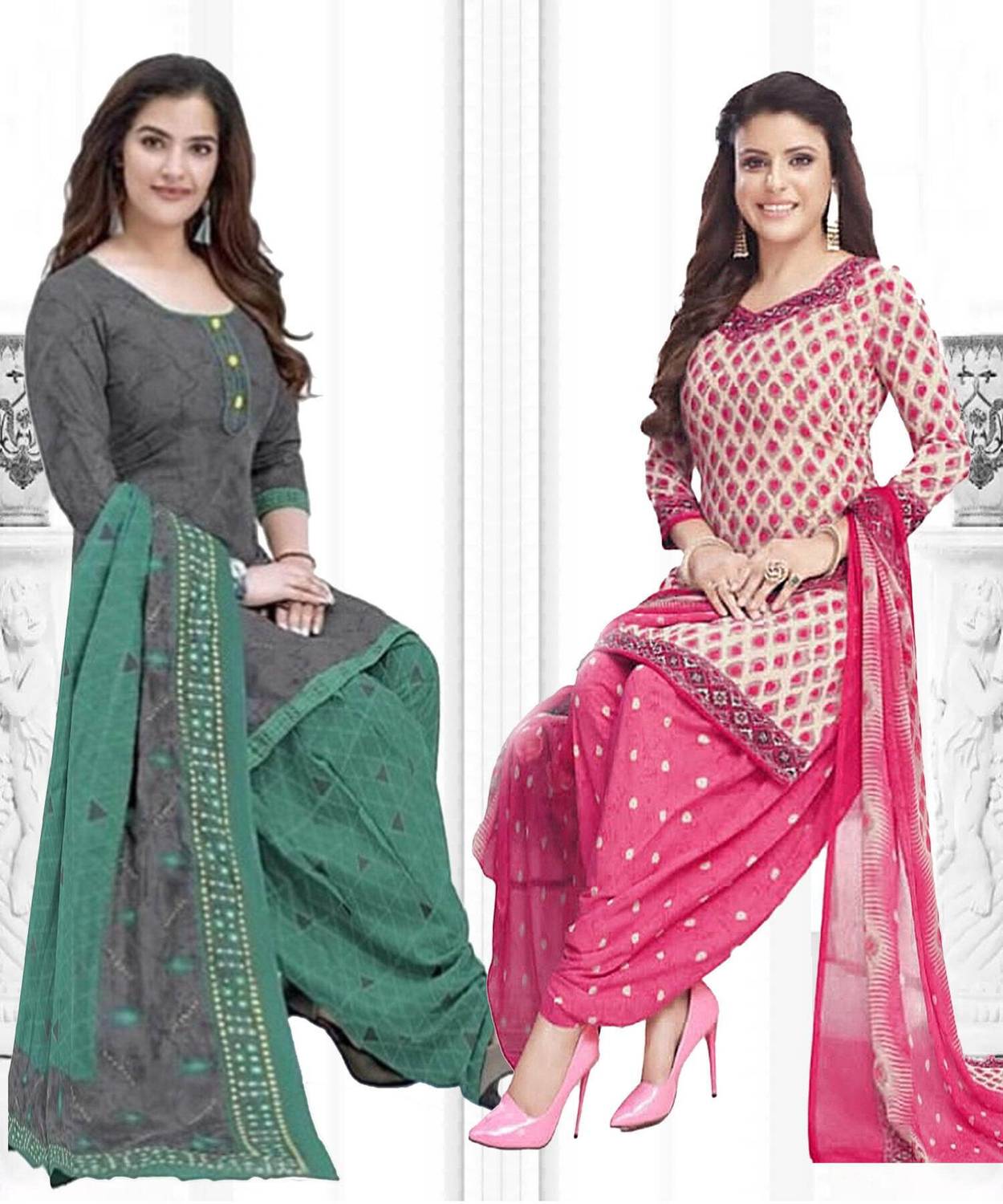 2 Unstitched top , 2 Unstitched bottom , 2 Unstitched dupatta