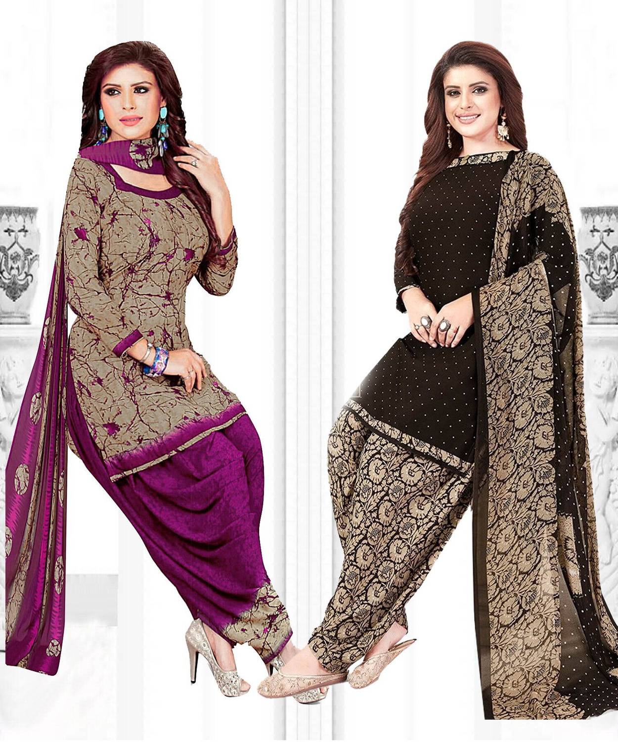 Womens Crepe Printed Unstiched Dress Material. Add style to your Daily Wear Collection with this Printed Dress material Salwar suit. 2 Unstitched Salwar, 2 Unstitched Top, 2 Dupatta.Top & Bottom Fabric : American Crepe, Dupatta Fabric : Martina You can use it for daily wear purpose it will give you immense comfort and fresh styling look.