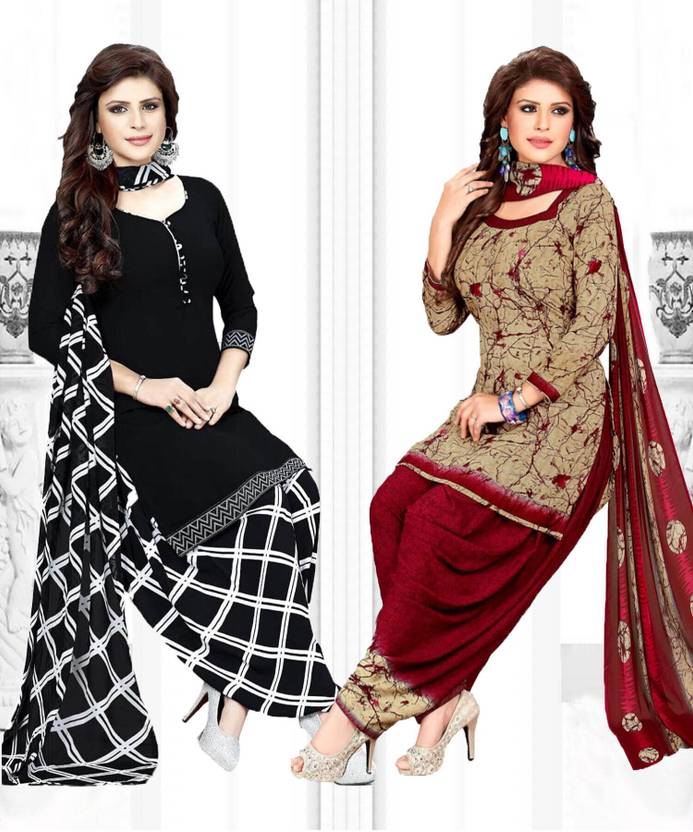 Womens Crepe Printed Unstiched Dress Material. Add style to your Daily Wear Collection with this Printed Dress material Salwar suit. 2 Unstitched Salwar, 2 Unstitched Top, 2 Dupatta.Top & Bottom Fabric : American Crepe, Dupatta Fabric : Martina You can use it for daily wear purpose it will give you immense comfort and fresh styling look.