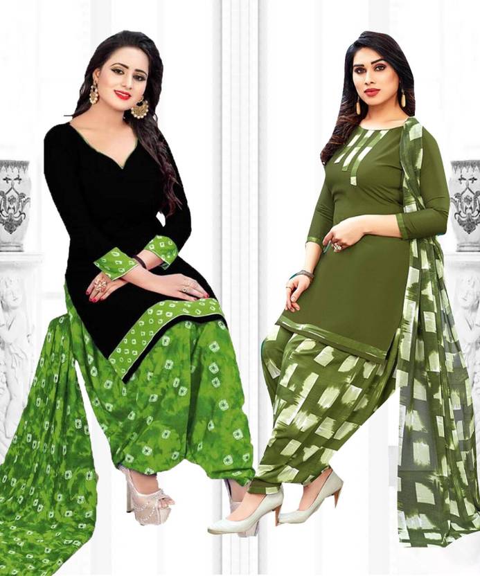 Womens Crepe Printed Unstiched Dress Material. Add style to your Daily Wear Collection with this Printed Dress material Salwar suit. 2 Unstitched Salwar, 2 Unstitched Top, 2 Dupatta.Top & Bottom Fabric : American Crepe, Dupatta Fabric : Martina You can use it for daily wear purpose it will give you immense comfort and fresh styling look.