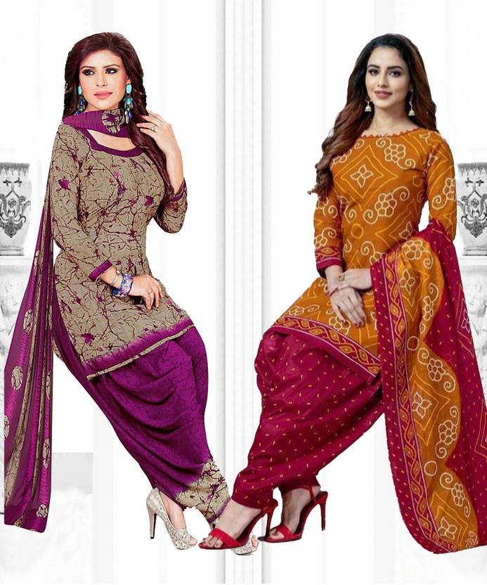 Unstitched Crepe Salwar Suit Material Printed