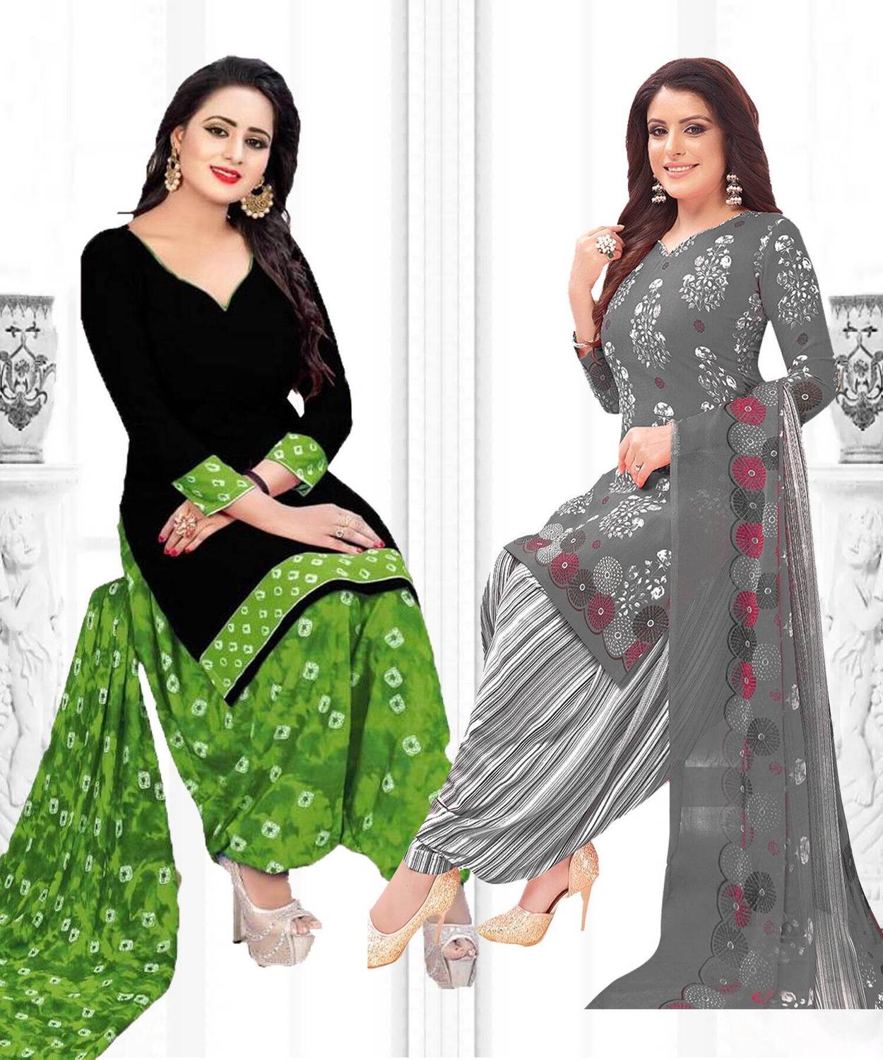 Womens Crepe Printed Unstiched Dress Material. Add style to your Daily Wear Collection with this Printed Dress material Salwar suit. 2 Unstitched Salwar, 2 Unstitched Top, 2 Dupatta.Top & Bottom Fabric : American Crepe, Dupatta Fabric : Martina You can use it for daily wear purpose it will give you immense comfort and fresh styling look.
