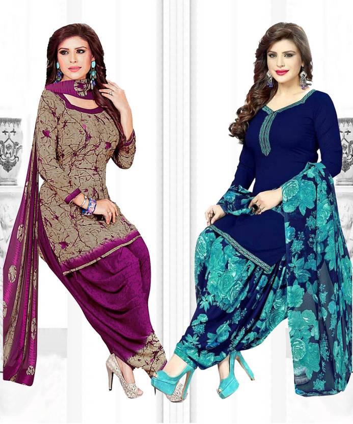 Womens Crepe Printed Unstiched Dress Material. Add style to your Daily Wear Collection with this Printed Dress material Salwar suit. 2 Unstitched Salwar, 2 Unstitched Top, 2 Dupatta.Top & Bottom Fabric : American Crepe, Dupatta Fabric : Martina You can use it for daily wear purpose it will give you immense comfort and fresh styling look.