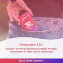 These condoms are formulated with a lubricant that includes up to 4.5% benzocaine, a mild component known to gently reduce sensation. Its presence can help create a controlled experience by gradually easing sensitivity. Moreover, the feature is intended to support those who prefer a slow pace during intimacy. The effect remains subtle, aiming to maintain comfort while allowing the moment to unfold at a steady rhythm.
