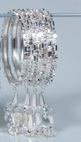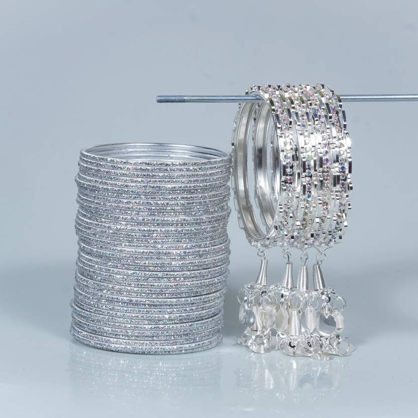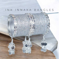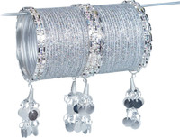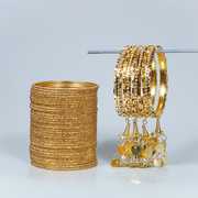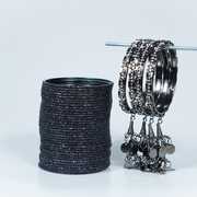 Featuring timeless artistry, this women's bangle set blends traditional charm with contemporary elegance. The intricate design showcases fine craftsmanship, making each bangle a statement piece. Several bangles in the set feature hanging ornaments that make them accent pieces. The delicate patterns and polished finish add subtle sophistication, ideal for festive occasions or everyday wear. The blend of simplicity and artistic detailing enhances the overall appeal, creating a graceful accessory.