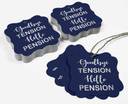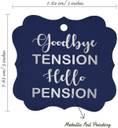 Inkdotpot Pack of 100 Silver Foil Good Bye Tension Hello Pension Retirement Tags No Paper Label (Blue)