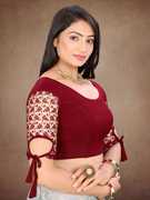 Pure Cotton Lycra Full Stitched Lycra Blouse for women with Embroidery and Sequence Work On Sleeve, Stretchable Lycra Blouse With Stylist Sleeve (28 to 36, S M L XL Sizes Available)
