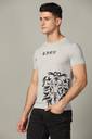 INKKR Men Printed Round Neck Cotton Blend Grey T-Shirt