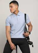 INKKR Solid Men Polo Neck Blue T-Shirt