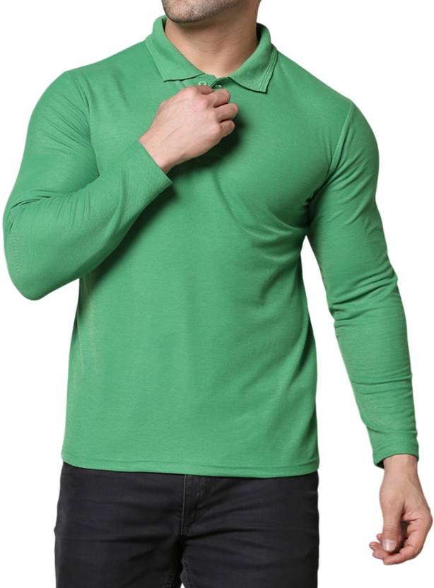 Men Solid Polo Neck Fullsleeve T-Shirt