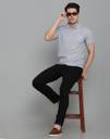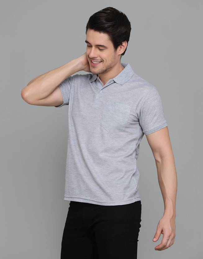 INKKR Solid Men Polo Neck Silver T-Shirt
