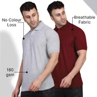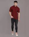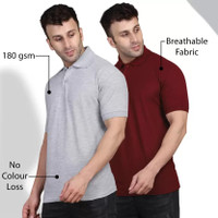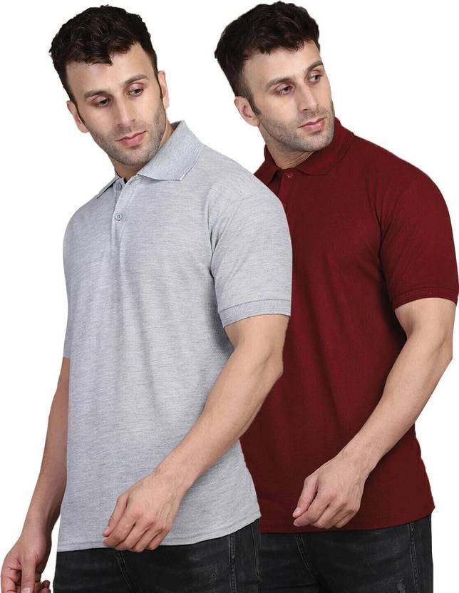 INKKR Solid Men Polo Neck Maroon, Grey T-Shirt