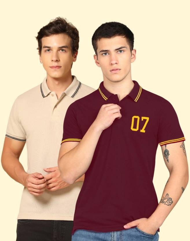 INKKR Pack of 2 Men Solid Polo Neck Polycotton Multicolor T-Shirt