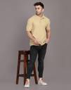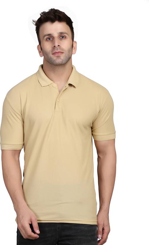 INKKR Solid Men Polo Neck Beige T-Shirt