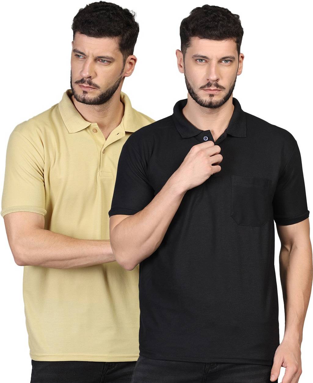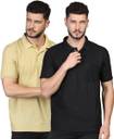 INKKR Solid Men Polo Neck Black, Beige T-Shirt