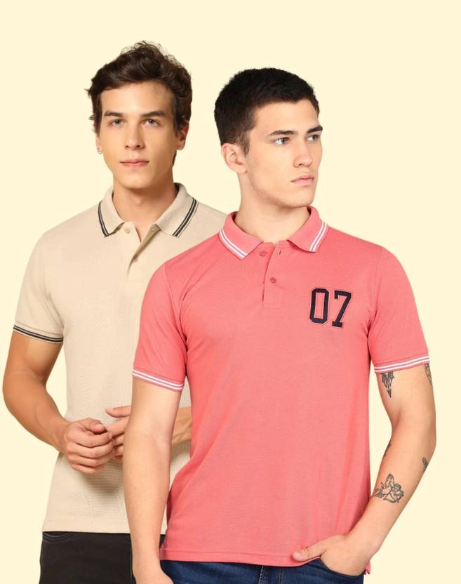 INKKR Pack of 2 Men Solid Polo Neck Polycotton Multicolor T-Shirt