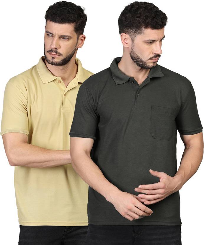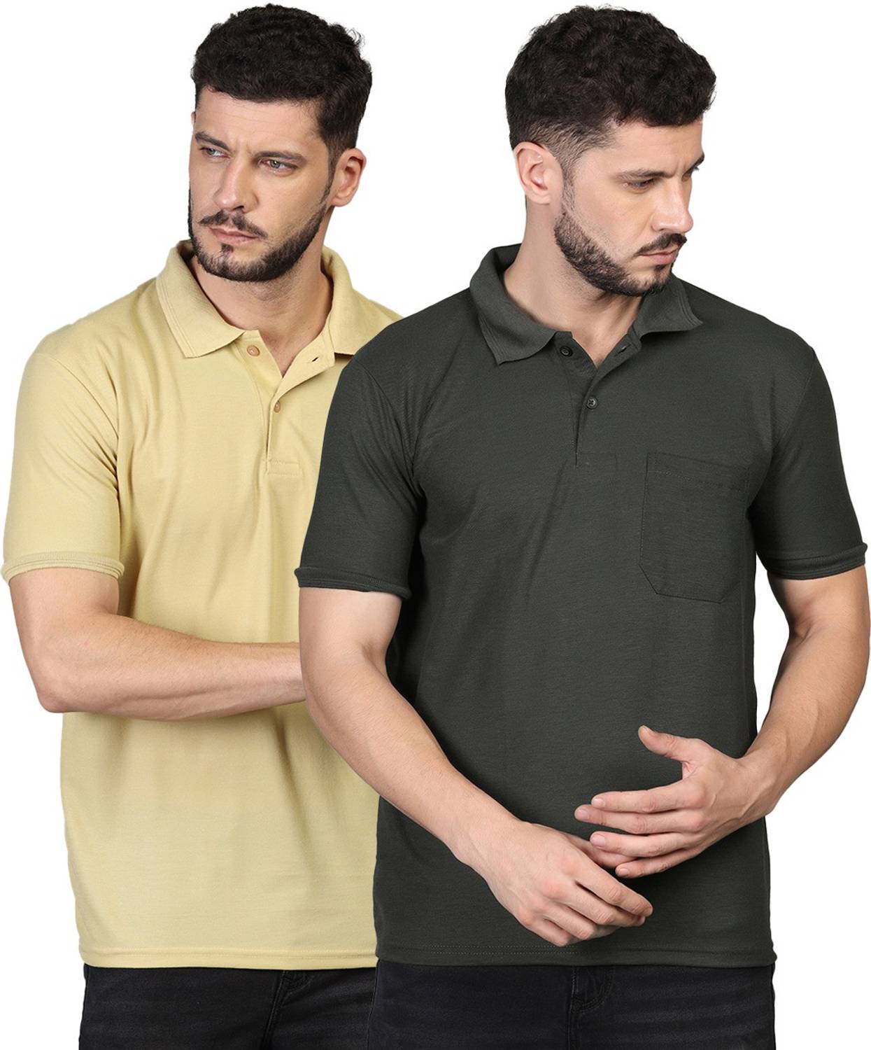 INKKR Solid Men Polo Neck Brown, Black T-Shirt