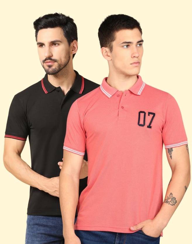 INKKR Pack of 2 Men Solid Polo Neck Polycotton Multicolor T-Shirt