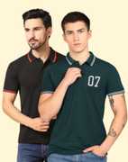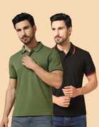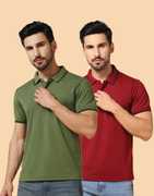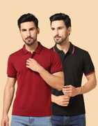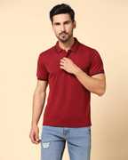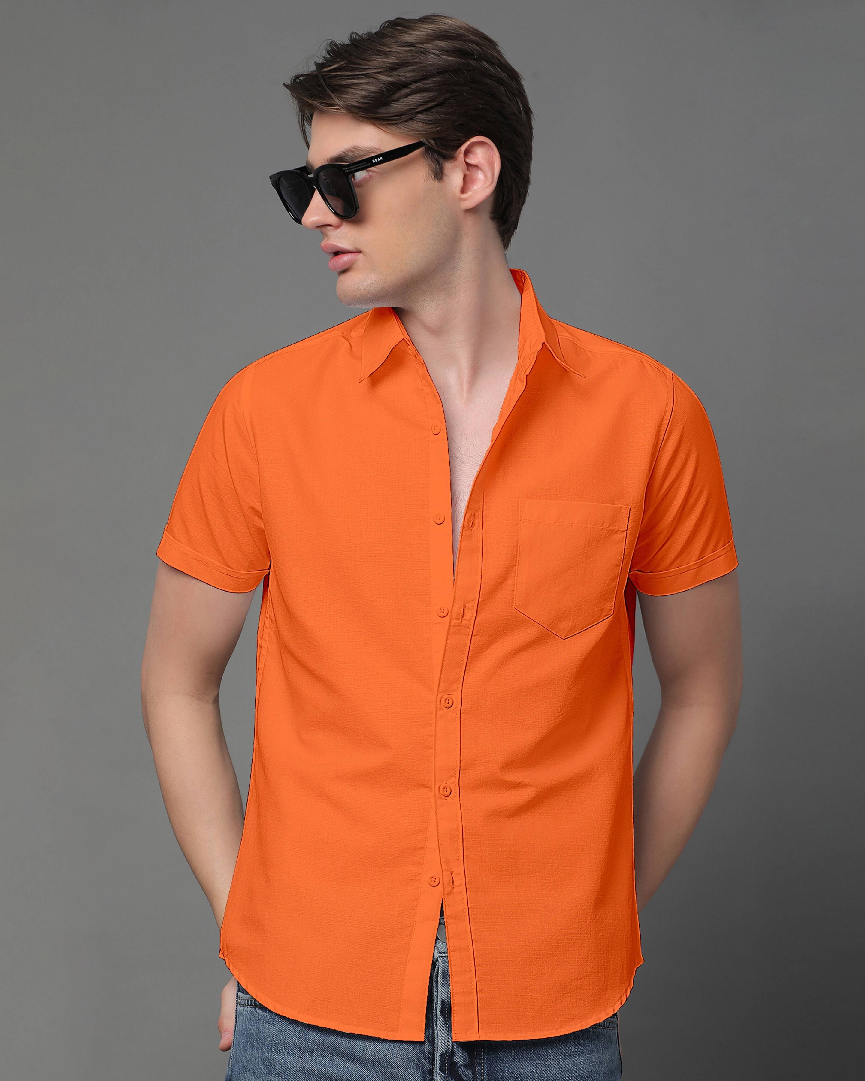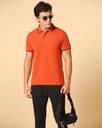 INKKR Solid Men Polo Neck Orange T-Shirt