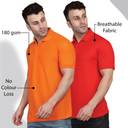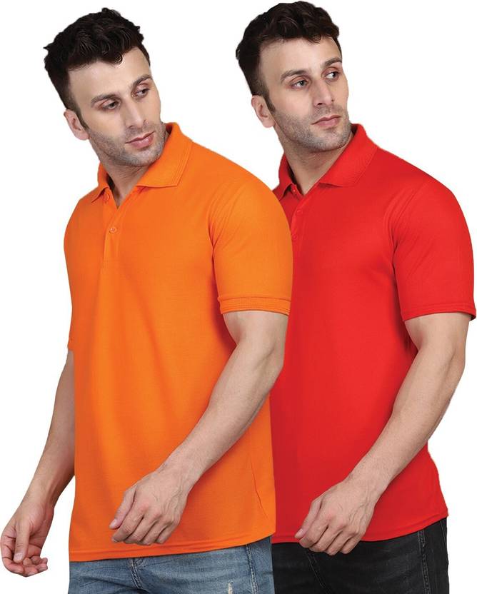 INKKR Solid Men Polo Neck Red, Orange T-Shirt