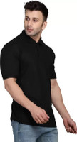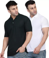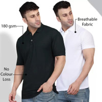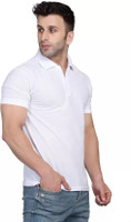 INKKR Solid Men Polo Neck White, Black T-Shirt