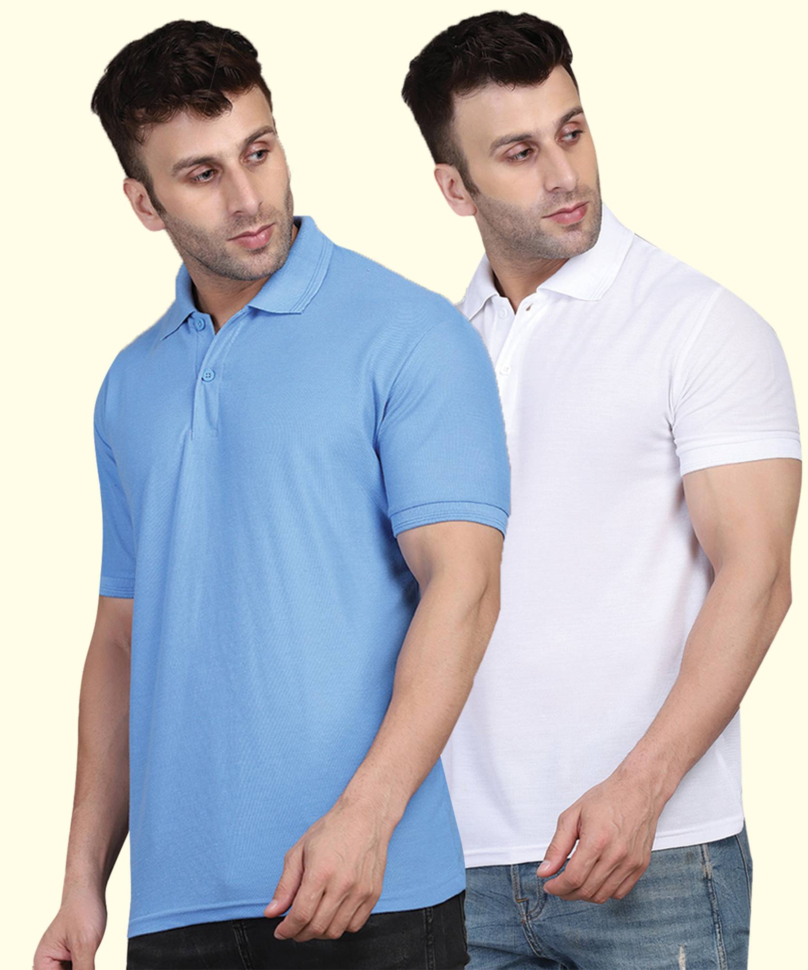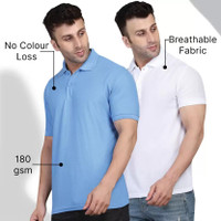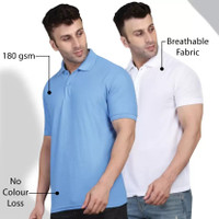 INKKR Solid Men Polo Neck Light Blue, White T-Shirt