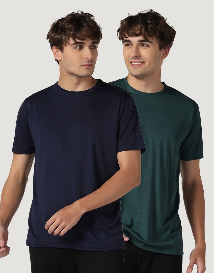 Men Solid Round Neck Multicolor T-Shirt Combo (Pack of 2)
