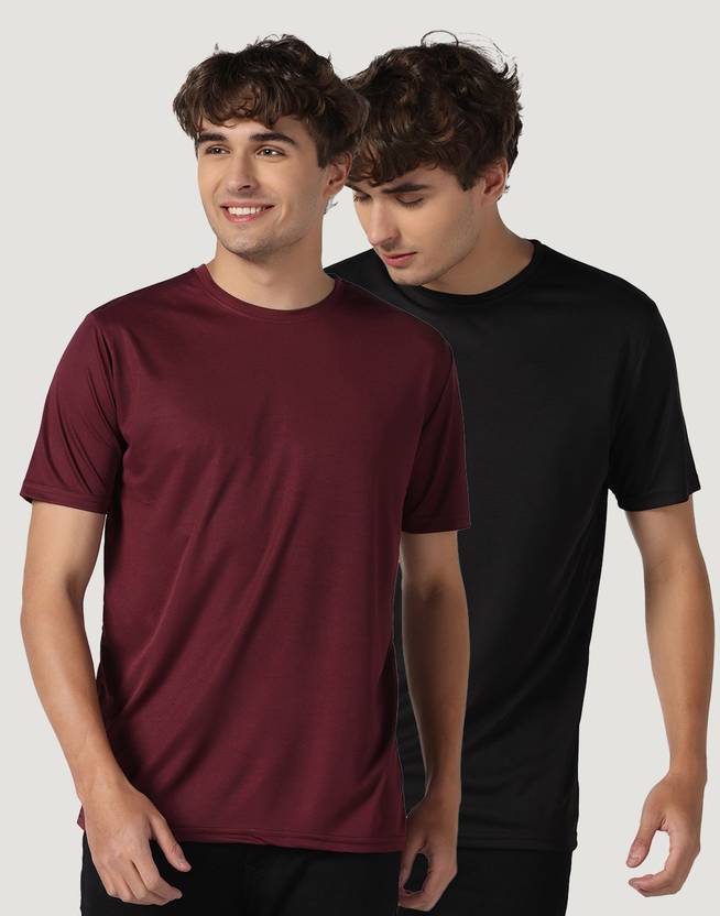 Men Solid Round Neck Multicolor T-Shirt Combo (Pack of 2)