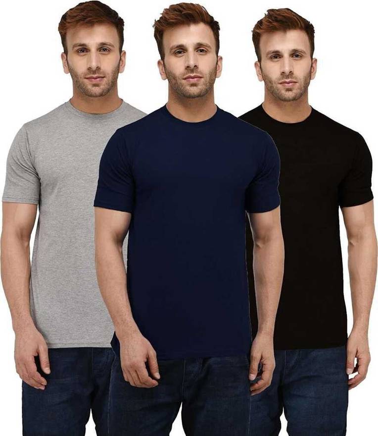 INKKR Pack of 3 Men Solid Round Neck Cotton Blend Multicolor T-Shirt