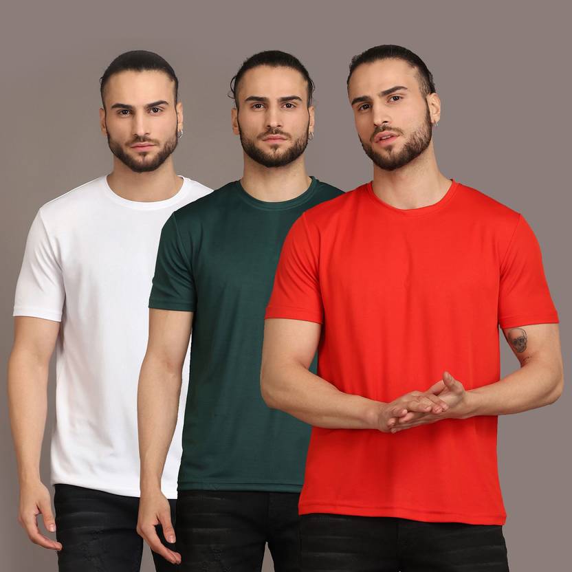 Solid Men Round Neck Multicolor T-Shirt (Pack of 3)