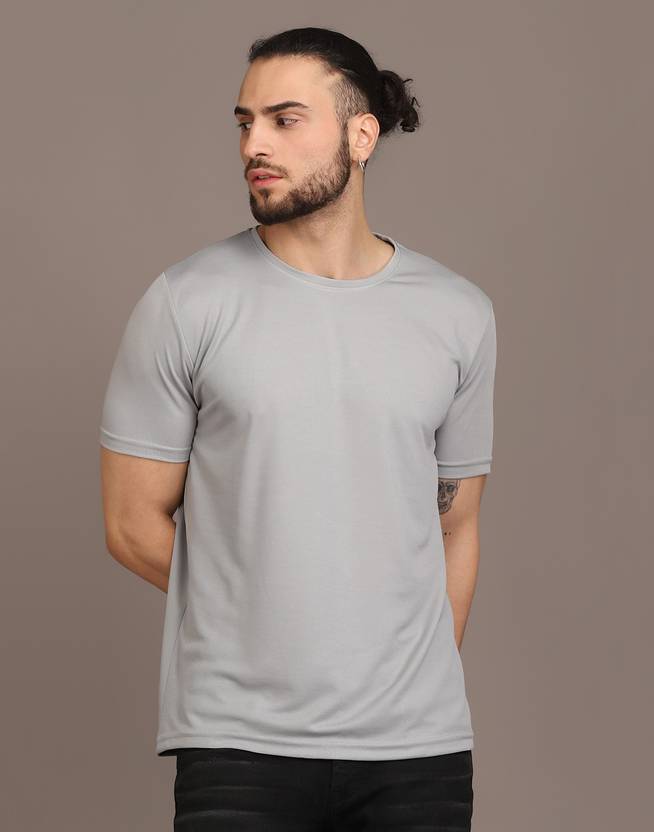 Men Solid Round Neck Cotton Blend Grey T-Shirt