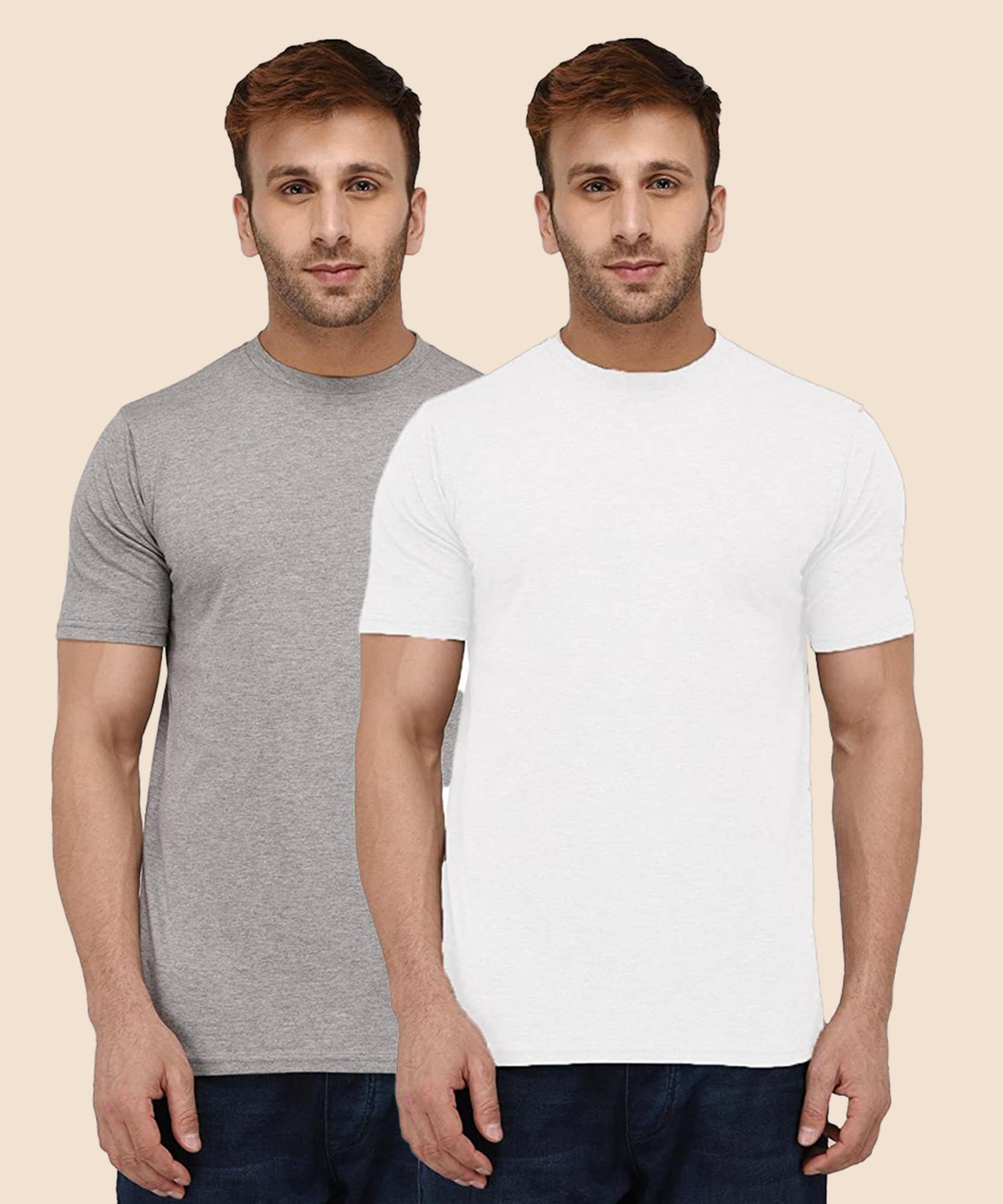 INKKR Pack of 2 Men Solid Round Neck Cotton Blend Multicolor T-Shirt