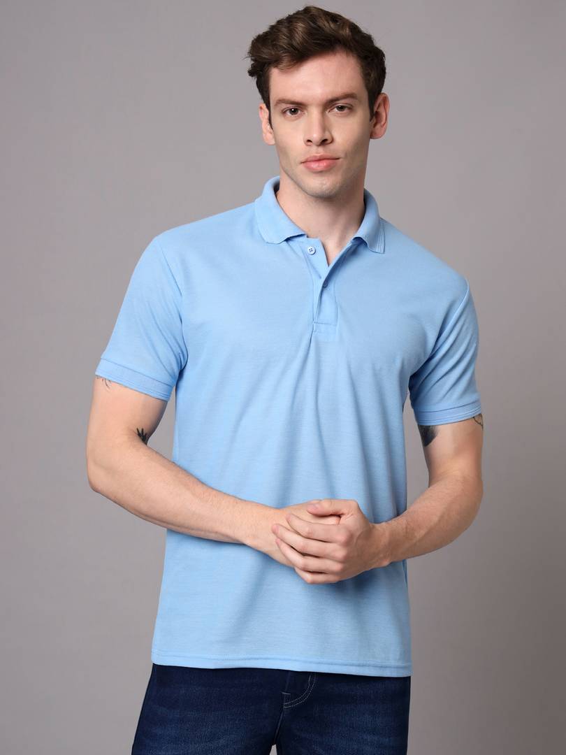 InkTees Solid Men Polo Neck Blue T-Shirt