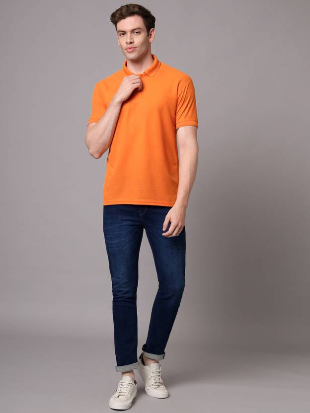 InkTees Men Solid Polo Neck Polycotton Orange T-Shirt