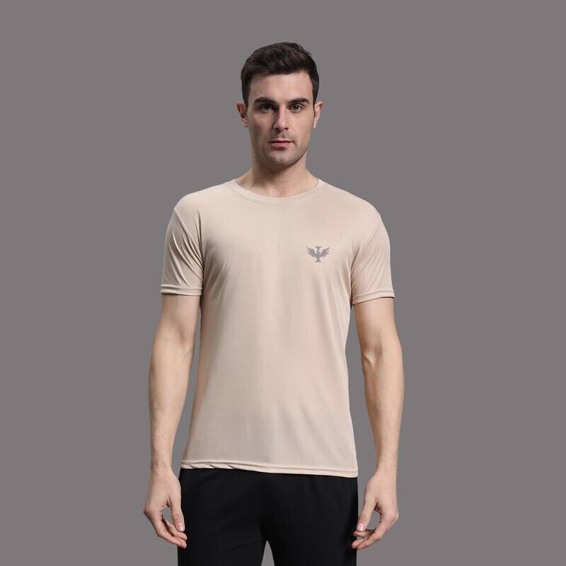 InkTees Men Solid Round Neck Polyester Beige T-Shirt