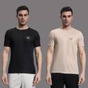 InkTees Pack of 2 Men Solid Round Neck Polyester Black T-Shirt