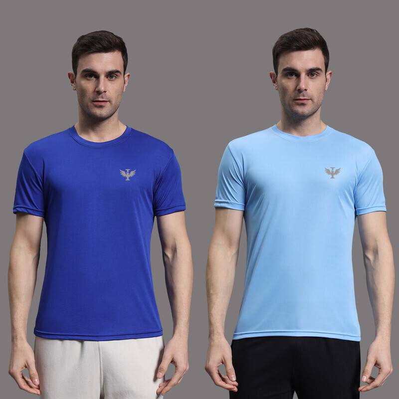 InkTees Pack of 2 Men Solid Round Neck Polyester Blue T-Shirt