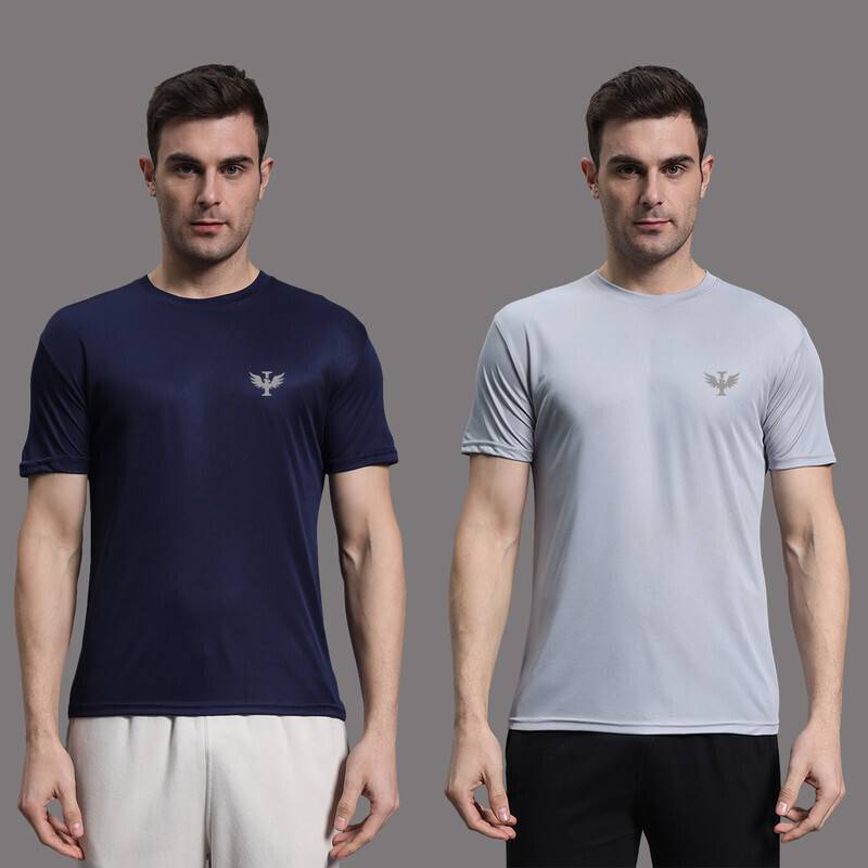 InkTees Pack of 2 Men Solid Round Neck Polyester Dark Blue T-Shirt