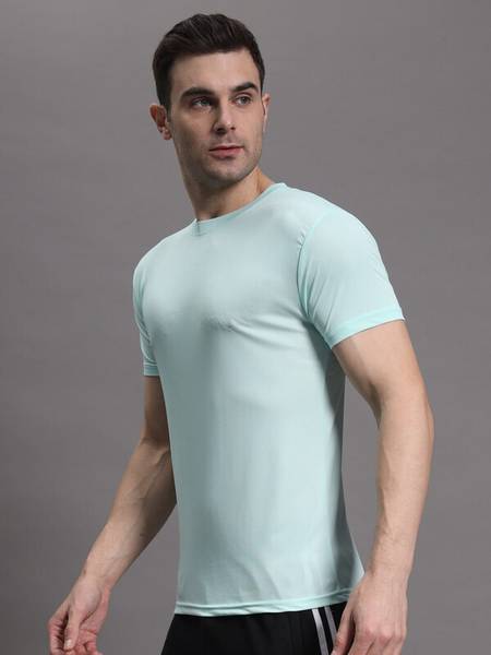 InkTees Men Solid Round Neck Polyester Green T-Shirt