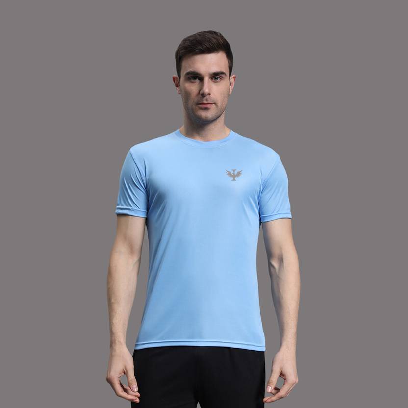 InkTees Men Solid Round Neck Polyester Light Blue T-Shirt