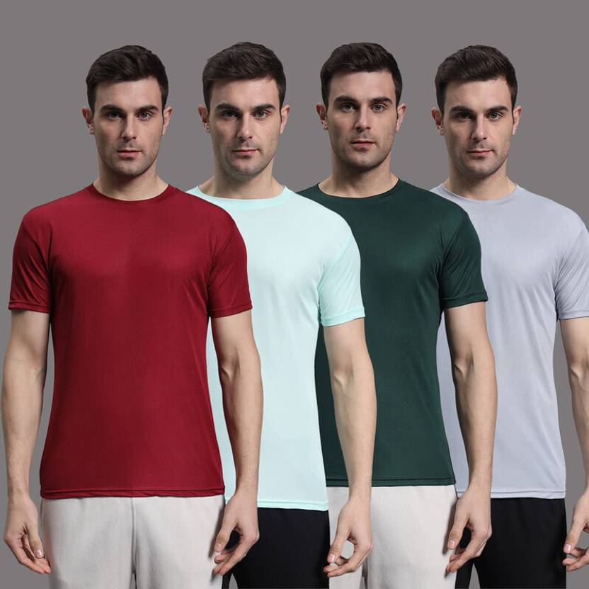 InkTees Pack of 4 Men Solid Round Neck Polyester Multicolor T-Shirt