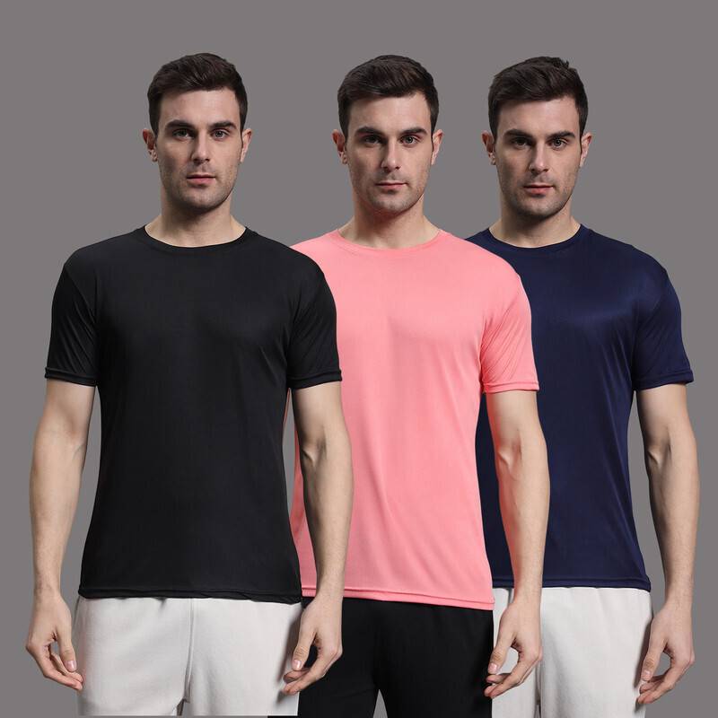 InkTees Pack of 3 Men Solid Round Neck Polyester Multicolor T-Shirt
