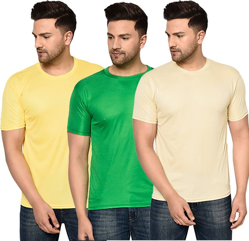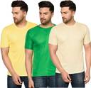 InkTees Pack of 3 Men Solid Regular Fit Plain T-Shirt Multicolor Round Neck (Pack of 3) Men Solid Round Neck Polyester Multicolor T-Shirt