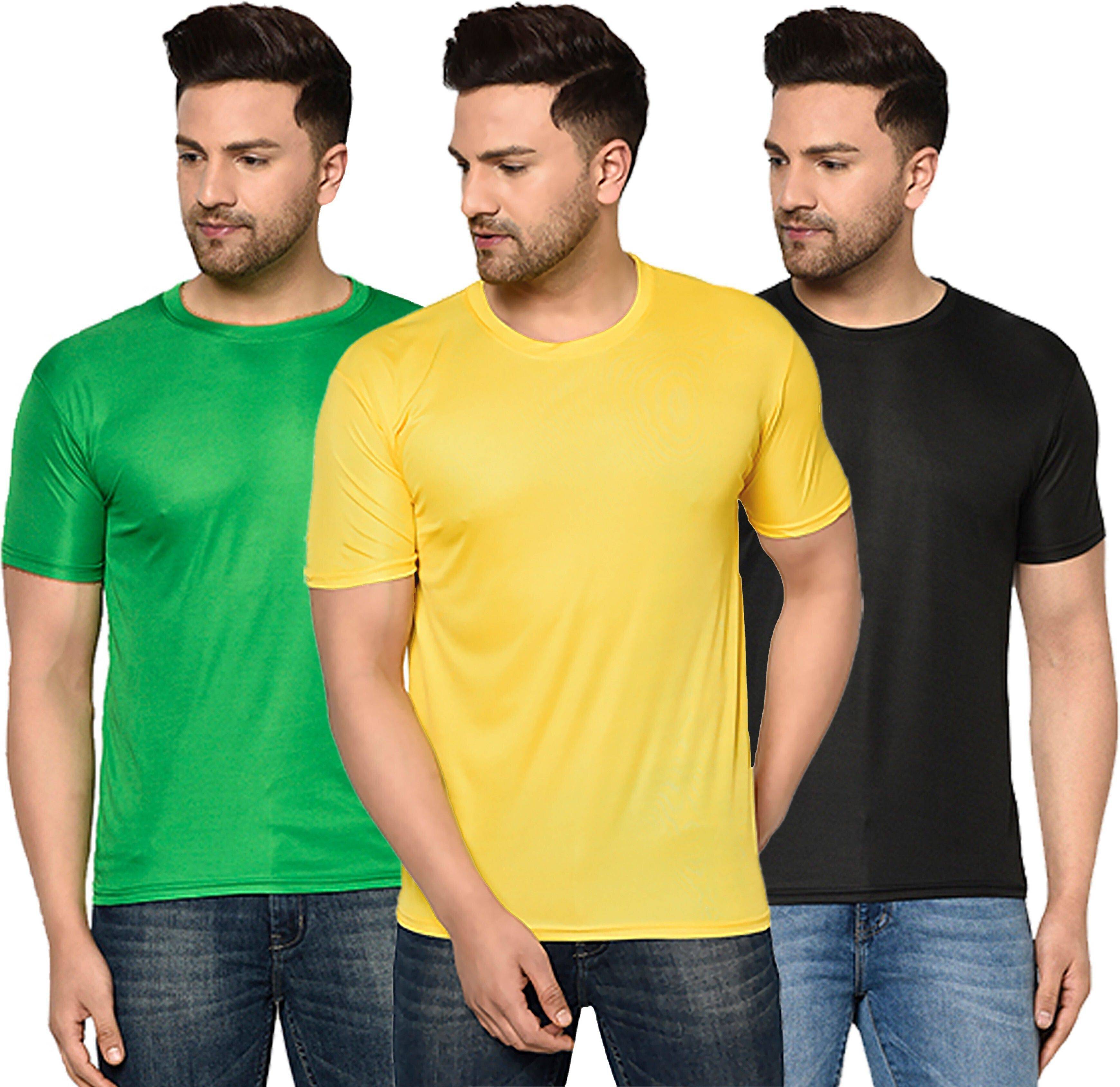 InkTees Pack of 3 Men Solid Regular Fit Plain T-Shirt Multicolor Round Neck (Pack of 3) Men Solid Round Neck Polyester Multicolor T-Shirt