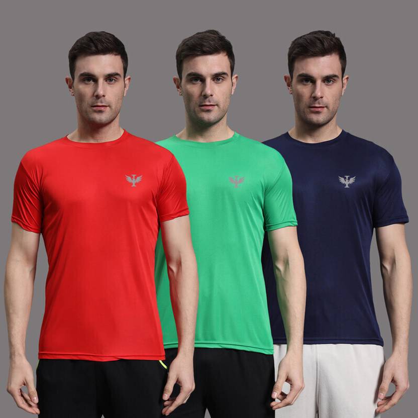 InkTees Pack of 3 Men Solid Round Neck Polyester Multicolor T-Shirt