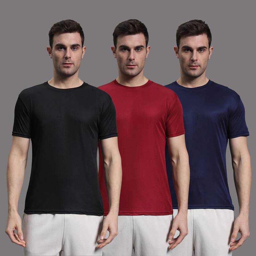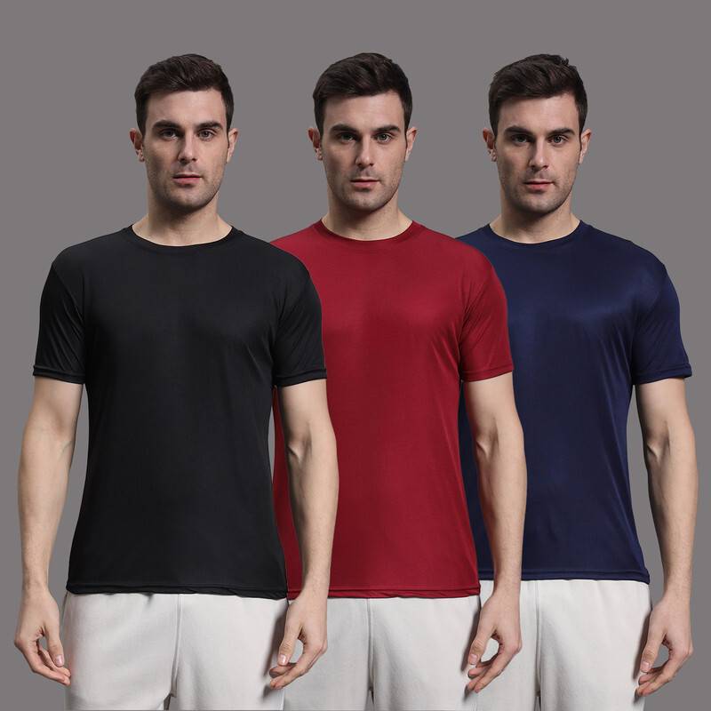 InkTees Pack of 3 Men Solid Round Neck Polyester Multicolor T-Shirt