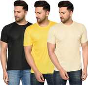 Basic Round Neck T-shirts can be worn as a Daily wear, or can be worn during your Morning walk, Running/Jogging and also during your Exercise and Workouts in the Gym. These can also be worn as a Casual Wear for all your Outings. Durable stitch and Quality finish. These T-shirts are stitched for higher durability using the best technology in the industry. After stitching, these products are finished and Quality checked for Size and any kinds of defects before packing. This assures the best of Quality and Value for money. Manufactured from Polyester fabric, these T-shirts are very smooth and soft making them comfortable to wear during all Seasons. This fabric is Durable, Odourless and passed through Anti fading treatment which ensures the T-shirt colour to be intact even after repeated washes.These fit even the "Big Boys". Available in a wide range of Normal and Plus Sizes ranging from S to XXL, these tshirts are a perfect fit for Individuals of all kinds of build and physique. These are regular fit and fits every individual comfortably.
