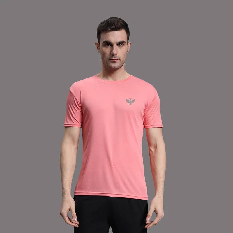 Men Solid Round Neck Polyester Pink T-Shirt