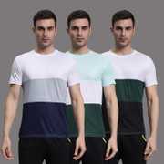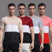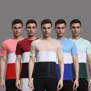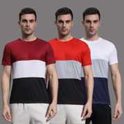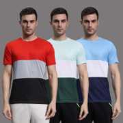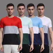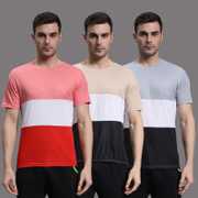 This Polyester Solid Three Shade Round Neck t-shirt will help you transition easily from a day look to an evening look. Its Instant dry, breathable, non-creasing, luxurious fabric keeps you fresh and free indoors and outdoors. Moreover, a customised flat-seam stitch along the sides and shoulders gives you a smart and sharp look.