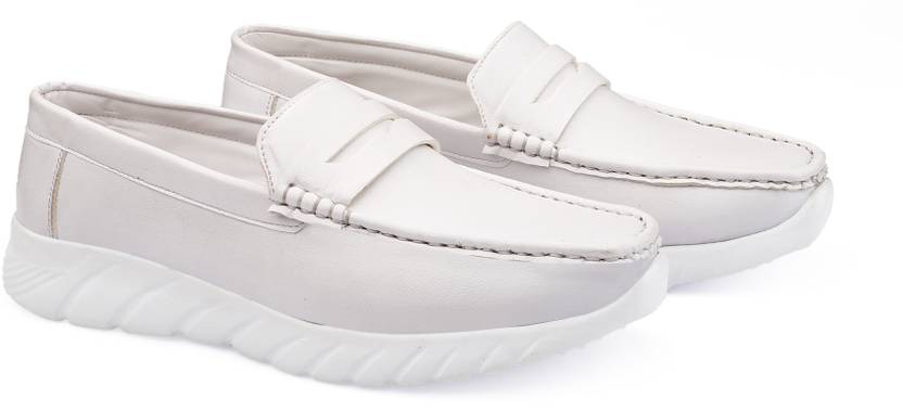 Men's New Stylish White Casual Slip-On Driving Loafers Shoes Loafers For Men (White , 6)
